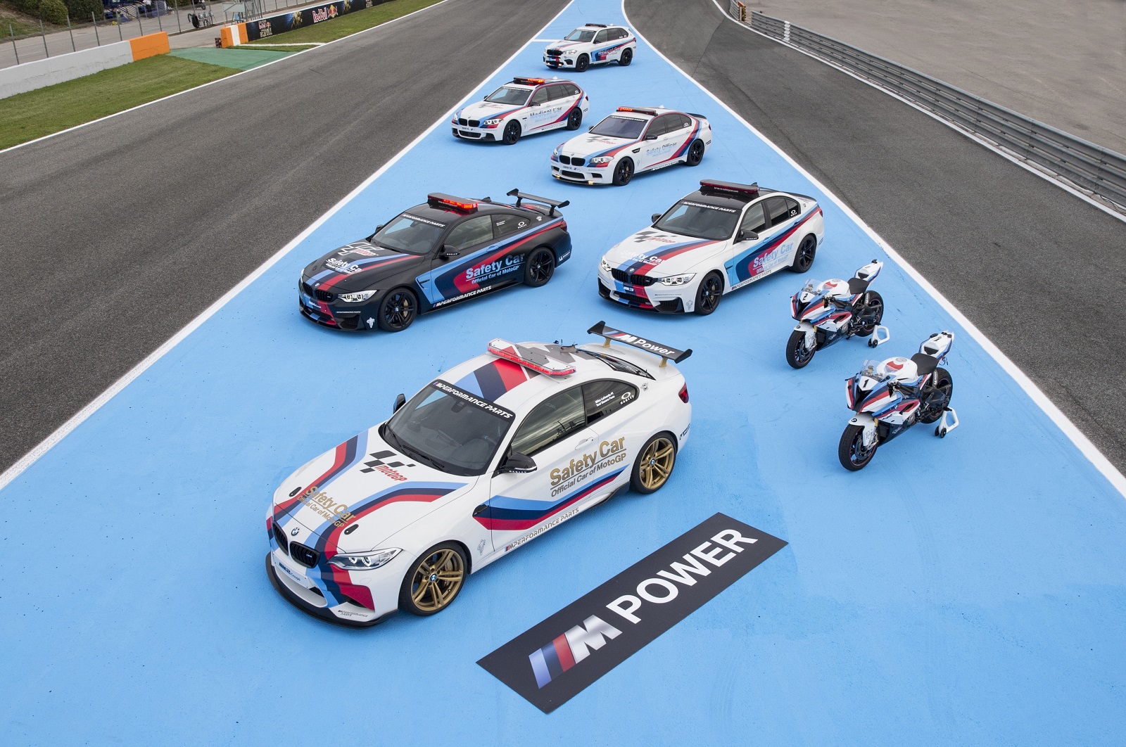 A MotoGP autóflottájában találunk még vízbefecskendező rendszerrel felszerelt BMW M4 Coupét és BMW M3-at is. Orvosi autónak BMW X5 M és BMW M550d xDrive Touringot használnak. Illetve van itt még BMW M5 és két BMW S 1000 RR motorkerékpár. Természetesen az összes járgány futóművét versenypályára hangolták.